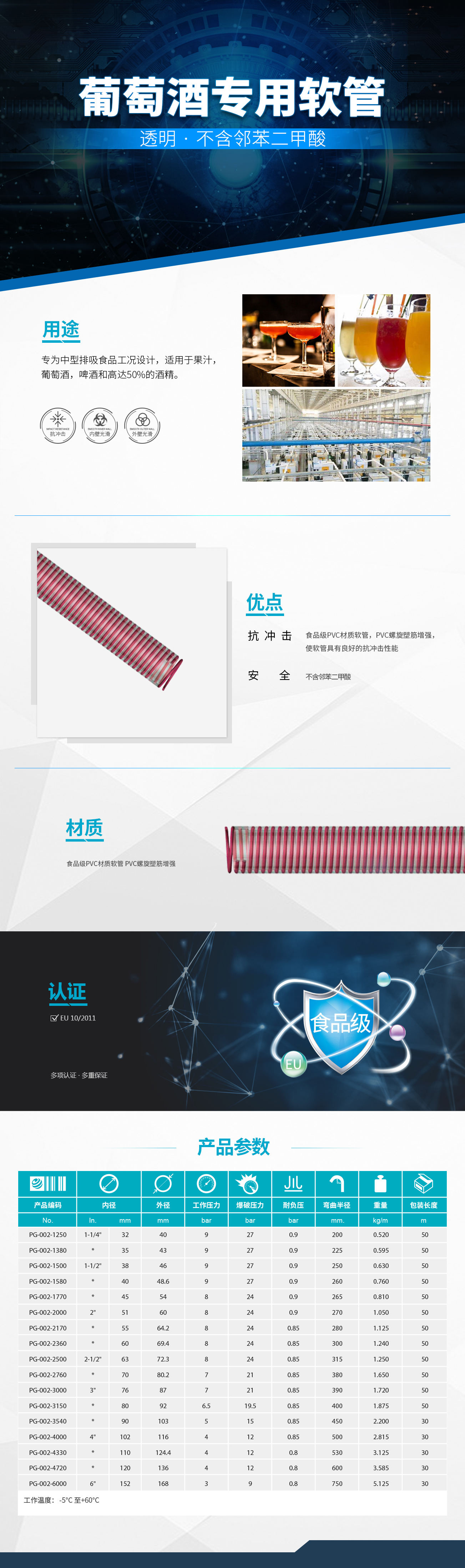 專為中型排吸食品工況設(shè)計(jì),適用于果汁,葡萄酒,啤酒和高達(dá)50%的酒精。
