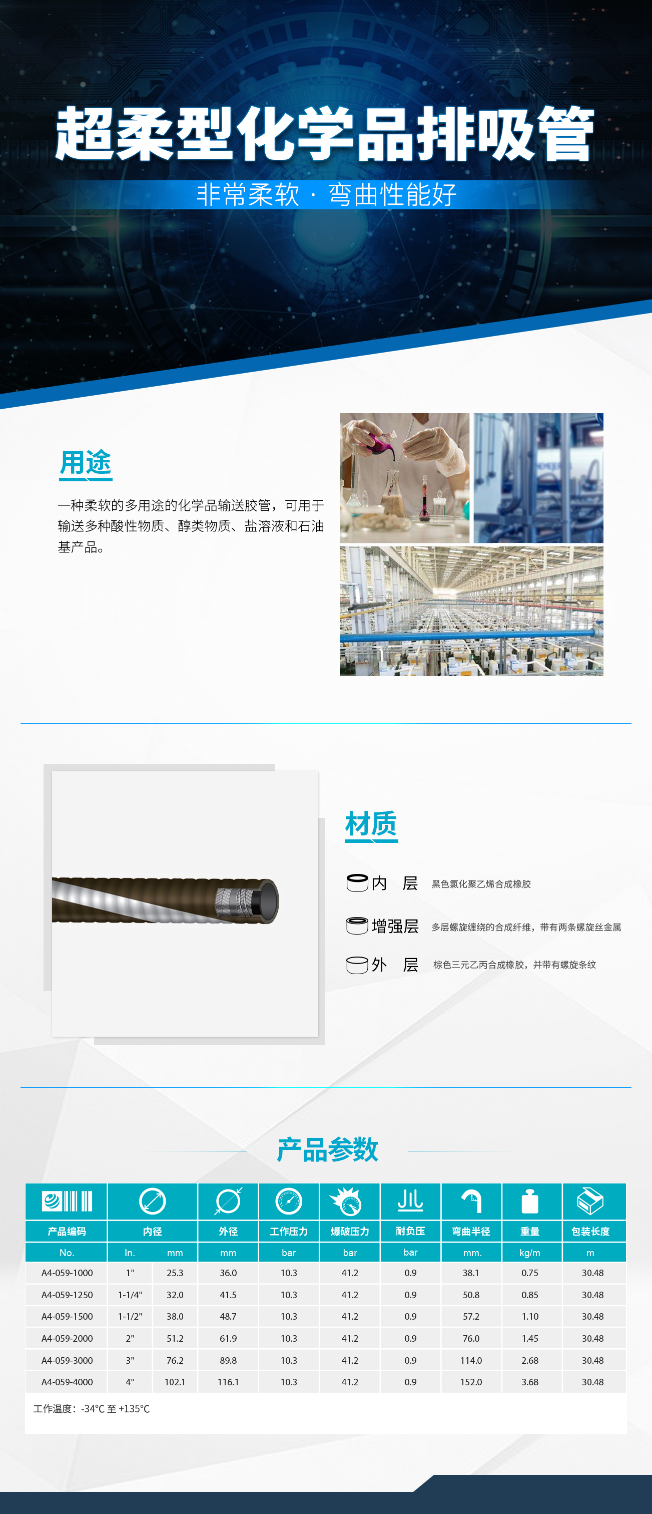 - 一種高技術(shù)、柔軟多用途化學(xué)管,可以輸送酸類(lèi),醇類(lèi),堿性及石油基液體