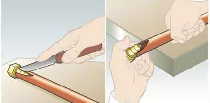 用刀以20°的夾角沿軟管方向切開,切口長度大約25mm,然后接頭就可以取出來了。值得注意的是要保護(hù)好接頭的齒不被割傷,以免下次使用時漏水。