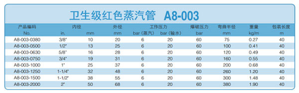 A8-003 衛(wèi)生級紅色蒸汽管 WASH WAY