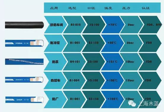 未藍(lán)牧場專用輸送方案,是根據(jù)我們多年乳品行業(yè)、牧場軟管服務(wù)經(jīng)驗,按照客戶需求、行業(yè)規(guī)范,集合了國內(nèi)外一線的產(chǎn)品資源,如TRELLEBORG、CONTITECH、GOODYEAR、SUPFLOW、CAFER等,專門提供的牧場流體輸送、清洗、連接、減震等輸送方案,涉及牧場擠奶生產(chǎn)、制冷罐轉(zhuǎn)運、奶泵轉(zhuǎn)運、奶罐車收奶卸奶、乳品工廠生產(chǎn)等,符合FDA、BFR、GB/T 21928-2008 等認(rèn)證,是目前國內(nèi)齊全的牧場軟管成套方案制定者。