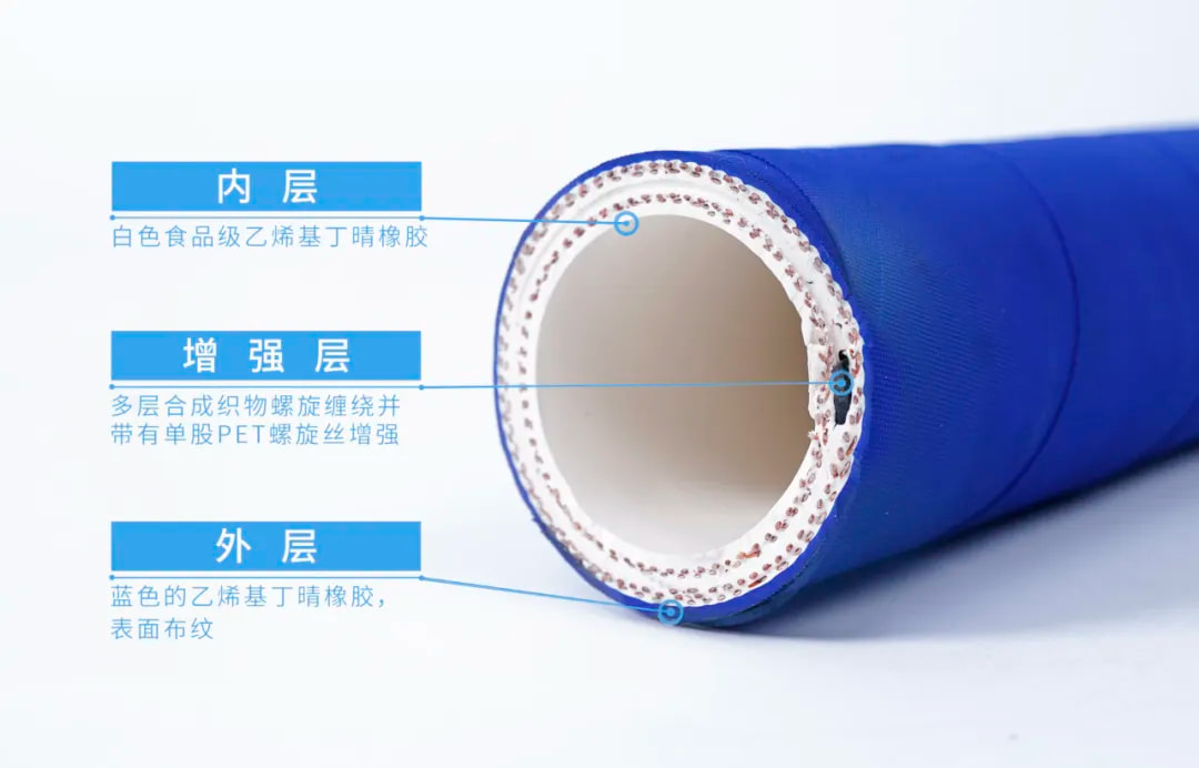 防車碾壓食品管CRATOS由多層合成織物螺旋纏繞,并帶有單股非金屬螺旋絲增強。該種特殊的構造使得軟管在發(fā)生意外擠壓后可較快恢復原狀。